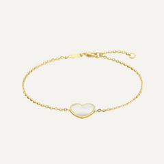 14k geel gouden ketting met parelmoer hart. Het collier heeft een schakelbreedte van 1,5mm en een draaglengte van 40-42cm. Afgewerkt met een karabijnsluiting.
